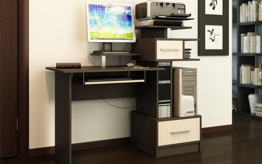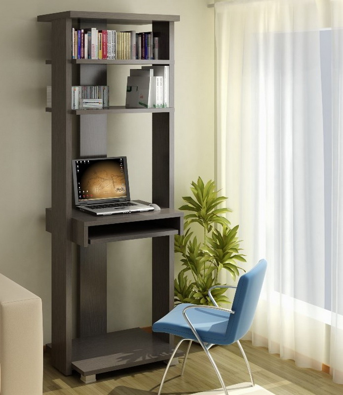 Ein kompakter Tisch für einen Computer hat eine Haupteigenschaft - er nimmt nur wenig Platz ein und ermöglicht es Ihnen, Platz in jedem Raum zu sparen. Sie können dieses Produkt sogar in dem beengten Raum installieren, nachdem Sie einen gemütlichen Arbeitsplatz eingerichtet haben. Ein kleiner Computertisch kann sowohl an der Wand als auch in jeder freien Ecke aufgestellt werden.Es kann direkt neben großen modularen Möbeln oder in einem separaten dafür vorgesehenen Raum aufgestellt werden. Dieses Produkt ist sehr funktionell und ermöglicht die effizienteste Nutzung von Raum.