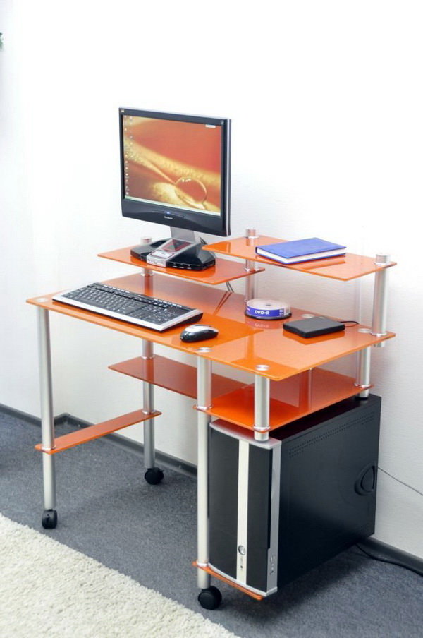 Der Computertisch kann die verschiedenste Farbregistrierung haben. In der Regel wird es abhängig von der Gesamtfarbgebung des Raumes ausgewählt, in dem es geplant ist. Also, für eine modernere und hellere Einrichtung perfekt, orange, braun, dunkelblau und dunkelgrün Tisch. Solche Modelle sehen sehr interessant und elegant aus.