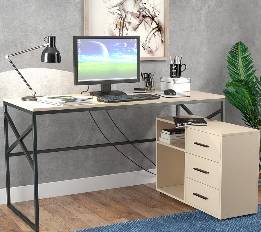 Auch, um kompakte Computermodelle und Metall zu erstellen, wird verwendet, aber in der Regel nur einen Rahmen zu erstellen. Die Basis der Tischplatte, die Säulen und die Beine sind aus Metall, während die Tischplatten aus Holz und Glas bestehen.