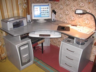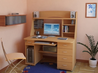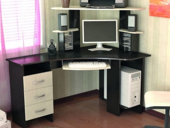 Es gibt verschiedene Arten von Computermöbeln mit Regalen. Sie unterscheiden sich in mehreren Parametern.