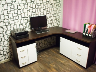 - Bequemlichkeit und Ergonomie. Eine solche Konfiguration von Möbeln ermöglicht Ihnen, den Raum so kompetent wie möglich zu organisieren. Alle Papiere und Dokumente werden an Ort und Stelle sein, und Sie müssen nicht im nächsten Raum nach einem Stift suchen. Sehr oft werden solche Strukturen auch durch spezielle Öffnungen und Auslässe für Kabel und Drähte ergänzt. Dies ist notwendig, damit die Verbindung des Geräts keine Schwierigkeiten verursacht und so bequem wie möglich ist.