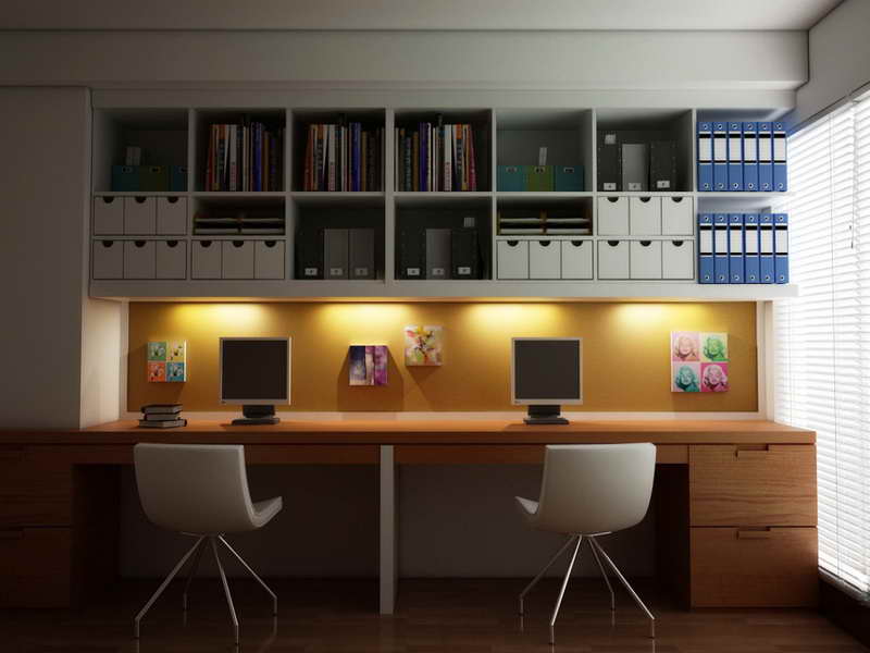 Erwägen Sie einige spezifische Optionen für die Verwendung eines Computertisches mit Regalen im Innenraum.