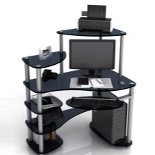 - Originell und spektakulär im Arbeitsbereich sieht Glas aus. Mit ihrer Hilfe können Sie den Raum eines kleinen Raumes optisch vergrößern und seinen Innenraum luftig machen. Spezielles stoßfestes Glas kann schweren Lasten standhalten, wodurch Sie alle fehlenden Geräte darauf installieren können. Der Hauptnachteil von Glasmodellen ist der hohe Preis.