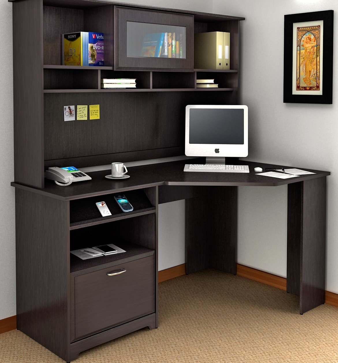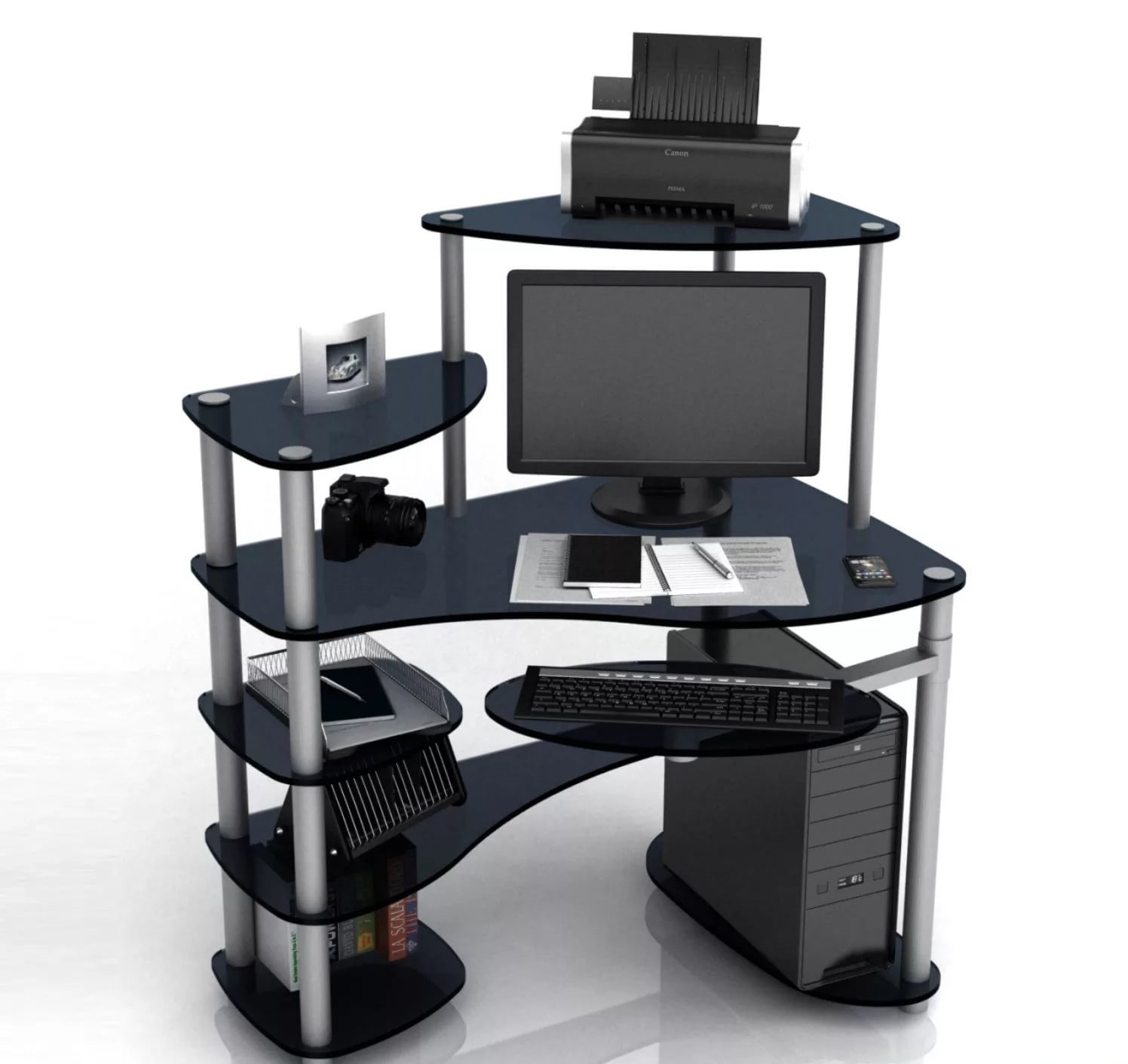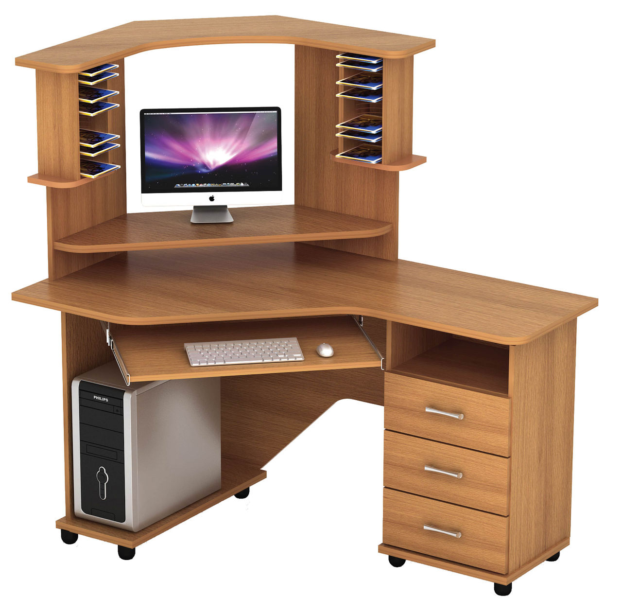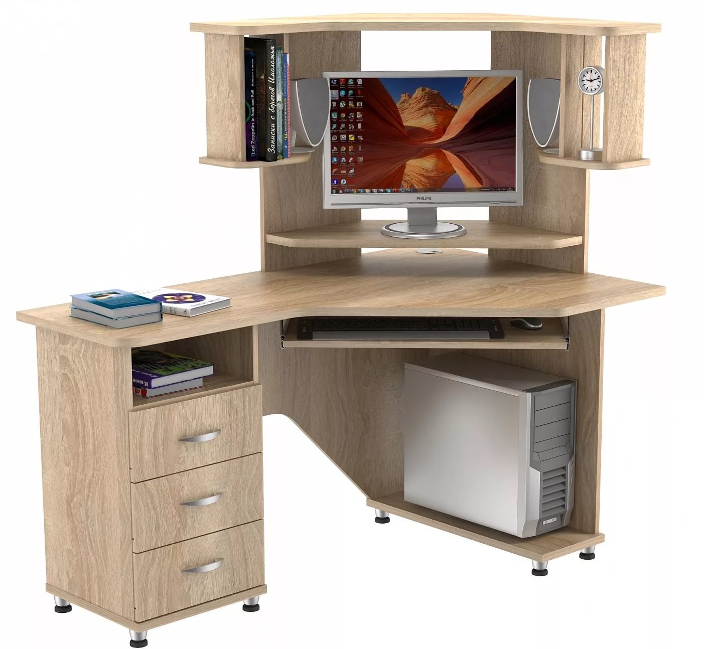 Corner Computer Desk mit einem Rack: Funktionen der Wahl