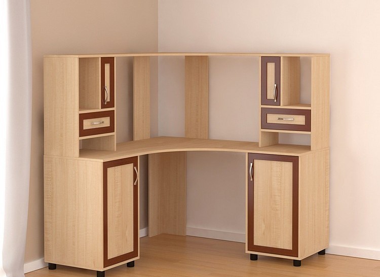 Eckmöbel haben eine Reihe von Vorteilen gegenüber anderen Einrichtungsgegenständen, da sie den freien Raum mit Vorteil nutzen können. Nachdem Sie die Ecken des Raumes ausgefüllt haben, können Sie den Raum optisch erweitern und der Person psychologischen Komfort bieten.Der Ecktisch hat eine Tischplatte, auf der bei der Installation des Laptops noch viel nicht zugewiesener Platz ist. Wählen Sie ein solches Produkt, bequemer Zugang zu Regalen und SchubladenAuf dem wichtige Gegenstände liegen.