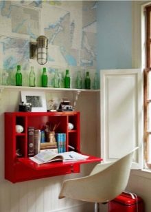 Dies ist eine weitere Art von vielseitigen und ergonomischen Möbeln. Ein solches Produkt ist ein Schrank oder ein Regal, an dem eine Tischplatte befestigt ist. Seine Größen sind unterschiedlich, alles hängt vom jeweiligen Modell ab. Diese Option ist ideal für Kinderzimmer und Wohnzimmer.