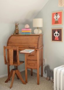 Der Vorteil dieses Designs ist nicht nur, dass es Platz spart. Dank seiner Funktionen erlaubt die Sekretärin, alles unnötige zu verstecken. Sehr beliebte Modelle, die zusammengebaute normale Schränke sind. Gleichzeitig werden solche Möbel mit einem Handgriff zu einem großen Schreibtisch mit funktionalen Regalen und Schubladen.