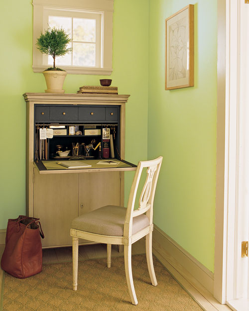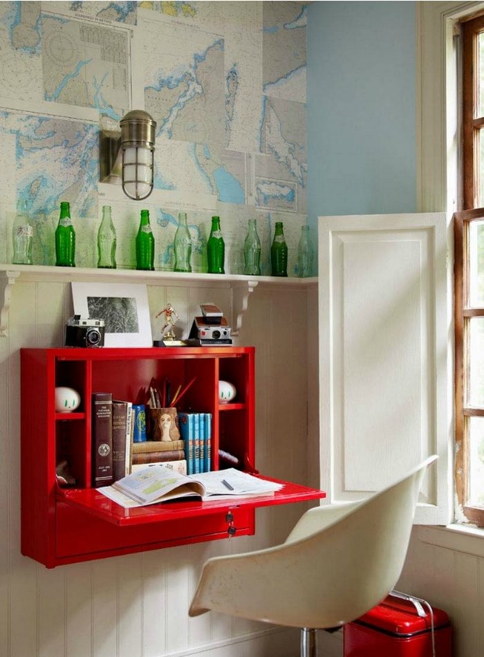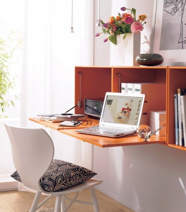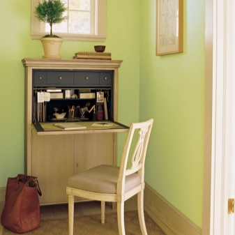 Die Idee der Sekretäre ist nicht neu, selbst unsere Großväter haben ähnliche Möbel benutzt. Klappente Sekretärinnen haben heute jedoch nicht aufgehört, relevant zu sein. Dies ist eine großartige Lösung für ein kleines Haus.