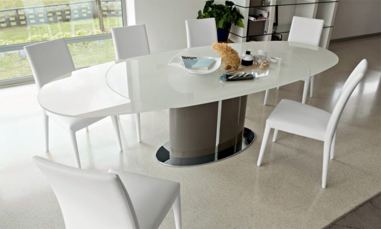 Diese Art von Tisch ist nicht nur eine funktionale Ergänzung des Raumes, sondern auch eine stilvolle Dekoration. Der weiße oder metallene Korpus und die eleganten niedrigen Beine ergänzen perfekt den Glasboden der Tischplatte.