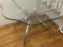 Der Glastisch jedes Modells zieht das Auge sogar durch ein Foto an. Wir haben nicht den richtigen gefunden - es ist einfach, es selbst zu machen. Genug vorhandenes Material ist genug. Die Hauptsache - den Wunsch, eine schöne Sache zu bekommen.