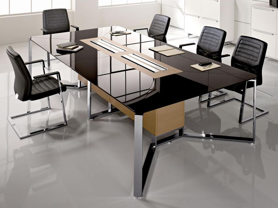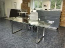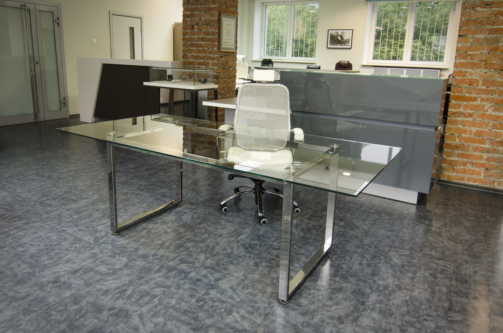 In Büros, viel öfter als in Häusern, gibt es Besprechungsräume. Da sind Tische mit Glasplatten als ergonomische und bequeme Möbel sehr beliebt.