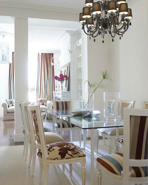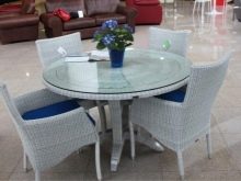In diesem Fall können Sie die Tischplatte mit einem Rahmen aus dem gleichen Material wie die Stütze oder Beine verzieren. Zum Beispiel werden die weiße klassische Farbe des Rahmens und die originale glänzende Unterstützung aus MDF oder laminierter Spanplatte in jedem modernen Stil schön aussehen. Für ein mit Holzpaneelen verziertes Haus ist Rattan, Mehrrohrhanf oder Holzbalken die beste Idee. Luxusoption - klassische Möbelwo die Stühle auf den geschwungenen Beinen mit Wandteppichen bedeckt sind, und unter der Glastischplatte ist die untere Reihe, mit dem gleichen Wandteppich gepolstert.