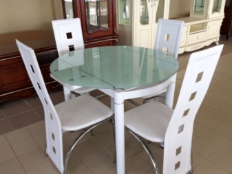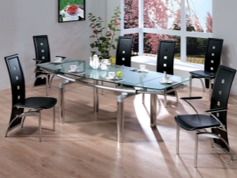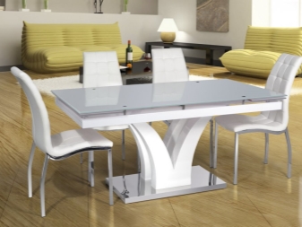 Glastische sind durch ihre Konstruktion monolithisch, gleitend (Transformatoren), faltend (Transformatoren). Es sollte angemerkt werden, dass sich der Ausdruck "monolithisch" auf das Modell bezieht, das die Gesamtheit der Tischplatte und der Träger bildet. Aber es gibt auch Tische mit einer monolithischen Tischplatte - die häufigste Variante von Möbeln.Transformatoren sind Tabellen, die einen oder mehrere Parameter ändern können.
