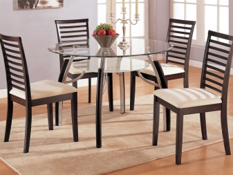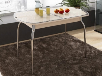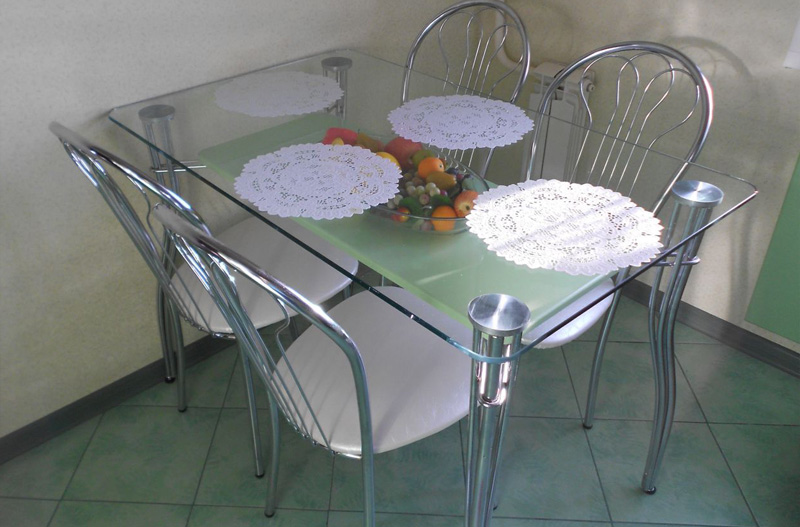 Gleich unten wird über die ersten drei Punkte gesprochen. Jetzt sagen wir, dass zum Zweck solcher Möbel Küche, Zeitschrift, Essen (für das Wohnzimmer) ist. Um den Tisch in den Innenraum zu passen, muss er die richtige Tischplatte wählen. Glas für Arbeitsplatten sind von den folgenden Arten: