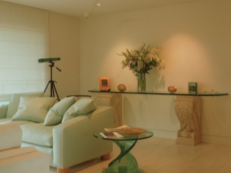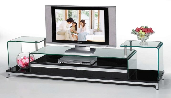 Aber der Glastisch ist durchaus in der Lage, nicht nur eine dekorative Funktion zu erfüllen: Das mehrstufige Produkt unter dem Fernseher wird dieser Aufgabe perfekt gerecht. Außerdem haben moderne Fernseher ein geringes Gewicht. In modernen Häusern wird viel Technologie den Sound verbessern, und alles wird in der Lage sein, auf den Untergestellen zu bleiben.