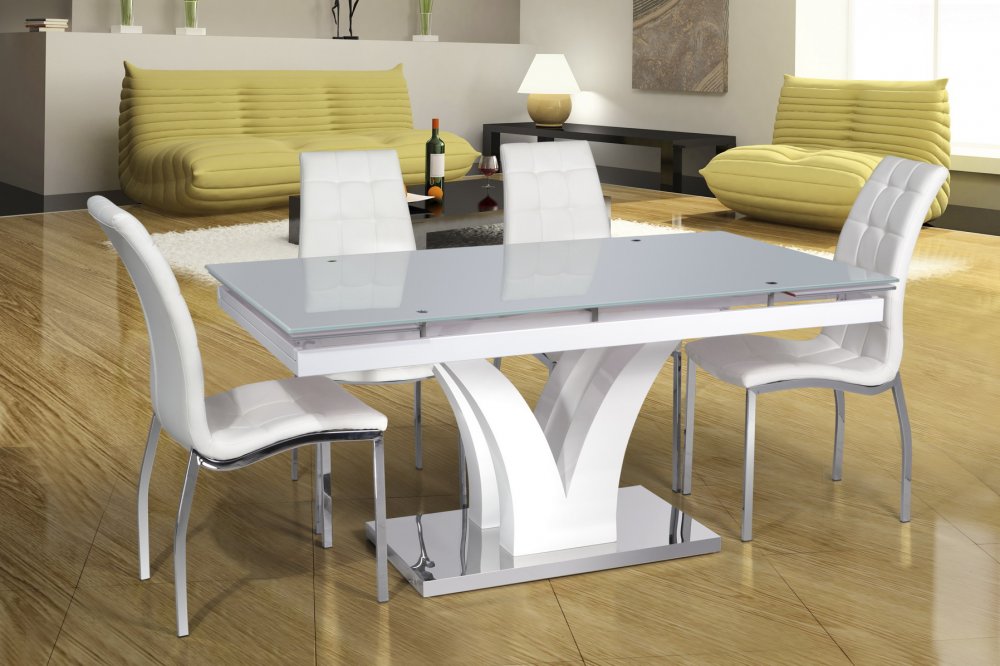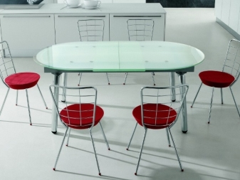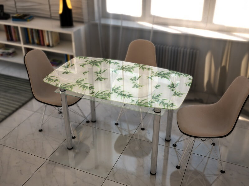 Kundenbewertungen zeigen, dass Glas ein fruchtbares Material für den Tisch ist. Der Glastisch verhält sich im Betrieb perfekt: wasserfest, verträgt verschiedene Temperaturen, pflegeleicht. Darüber hinaus können die meisten Modelle eventuell die Tischplatte in eine völlig andere verwandeln. Und dann, wenn Sie nur ein Teil ersetzen, können Sie einen neuen Tisch kaufen.