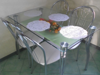 Für eine lange Zeit, um einen schönen Blick auf den Glastisch zu behalten, wird Genauigkeit und kompetente Pflege helfen. Das übliche weiche Tuch, um Staub zu entfernen, und dann spezielle Tücher zum Reinigen der Gläser verwenden. Bevor man Geschirr auf den Tisch legt, ist es besser, Plastikservietten oder eine Matte zu legen. Auf einer solchen Tischplatte sollte man nicht sitzen, bügeln, schneiden.