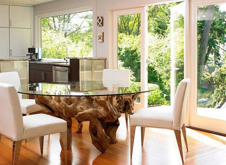 Auch diese Beispiele zeigen, dass die Materialkombination enorm ist. Die Hauptsache - eine harmonische Kombination aus Tisch und vorhandenem Interieur zu wählen.