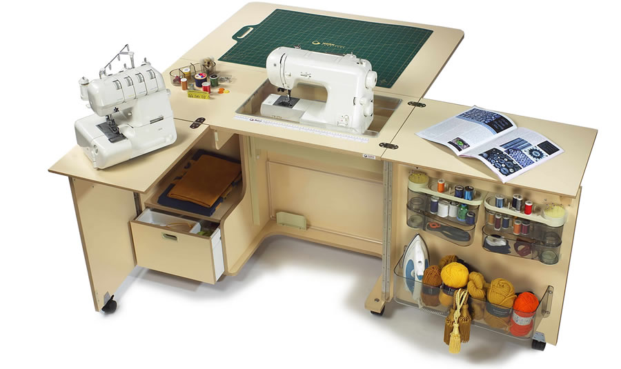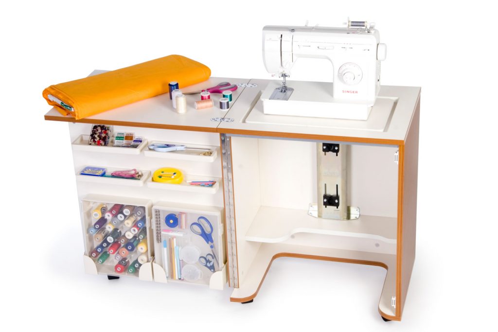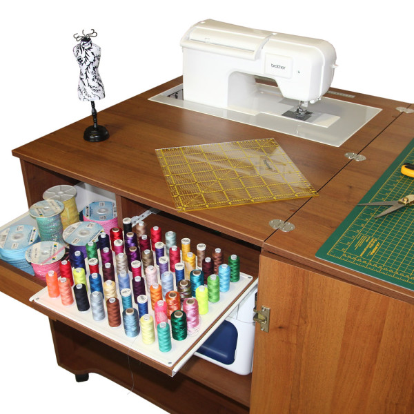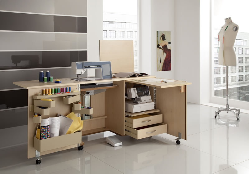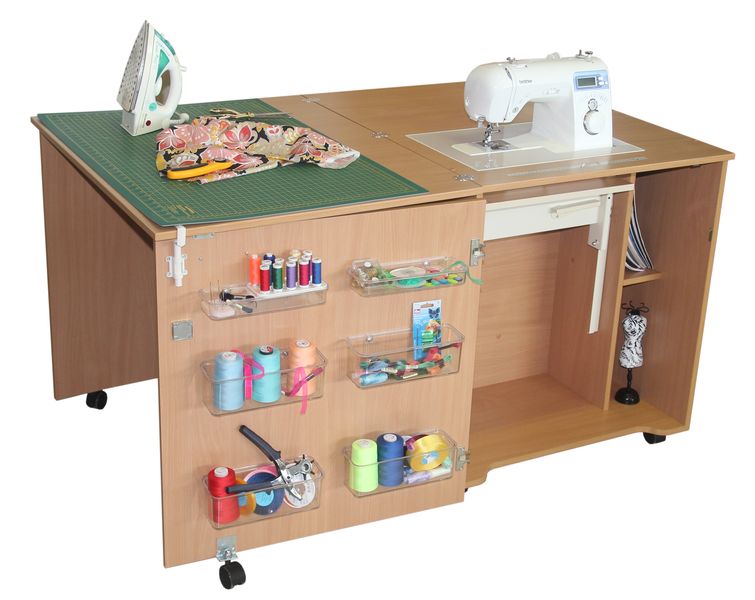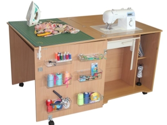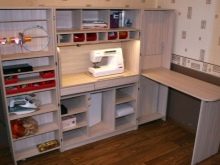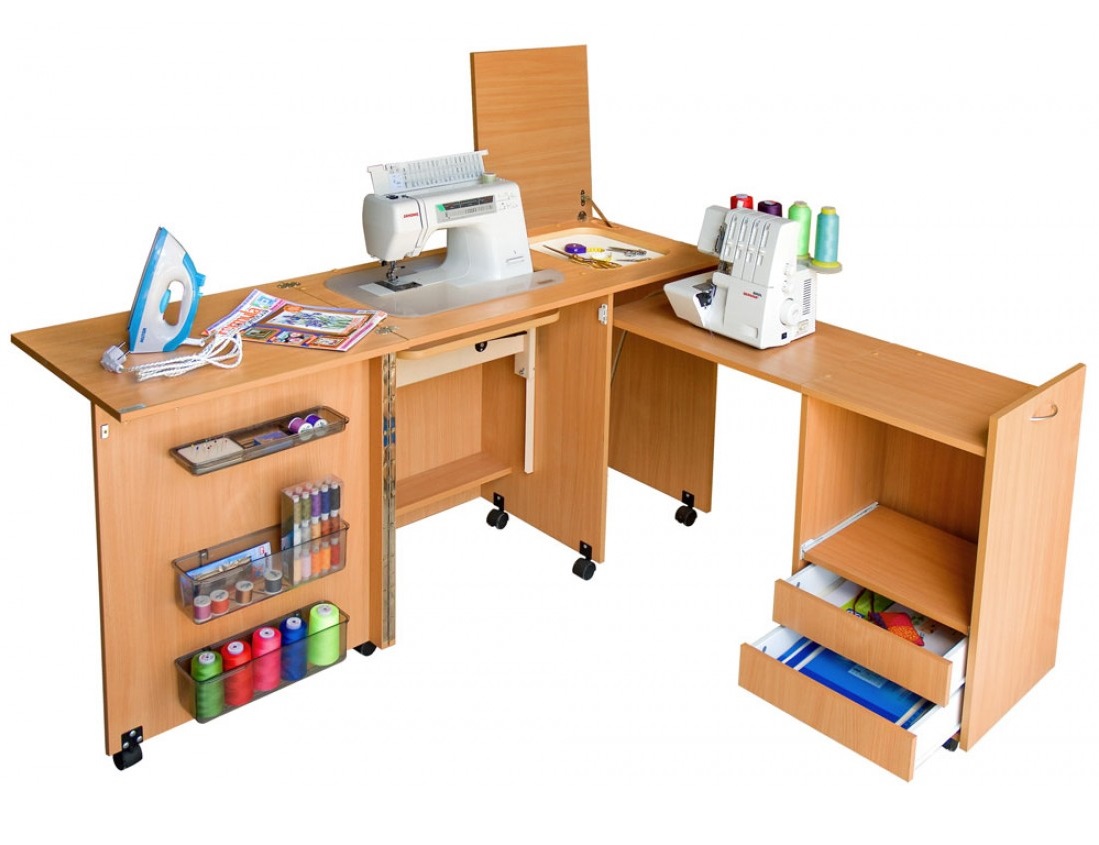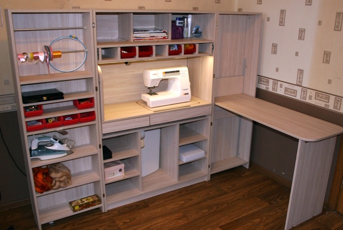 Mit Hilfe solcher Möbel können Sie einen echten Workshop erstellen.Die Effektivität des Nähprozesses wird deutlich erhöht.