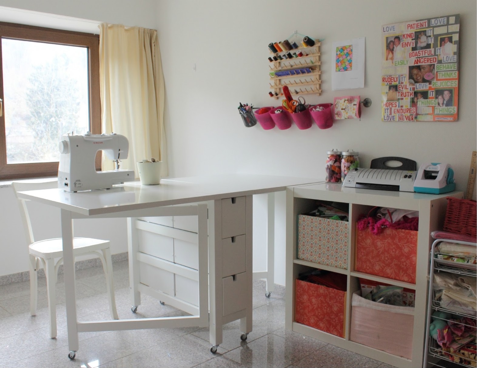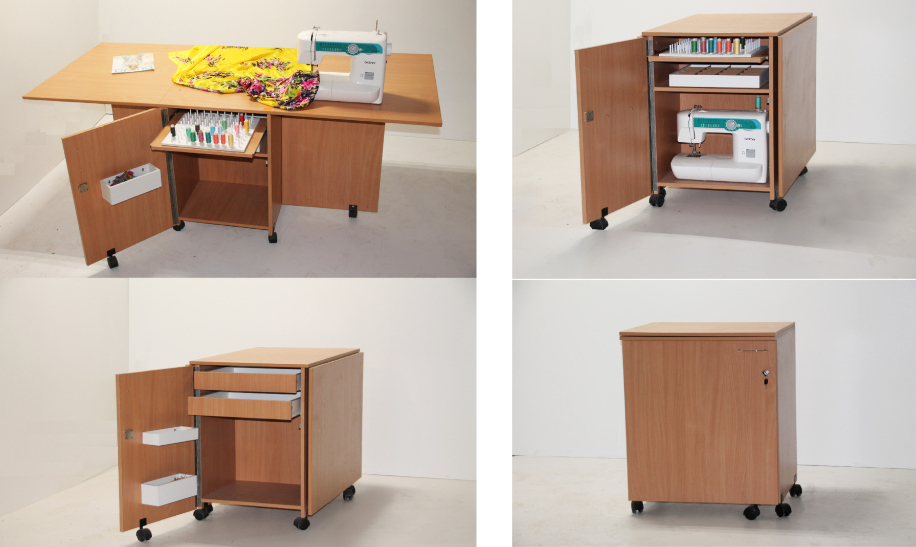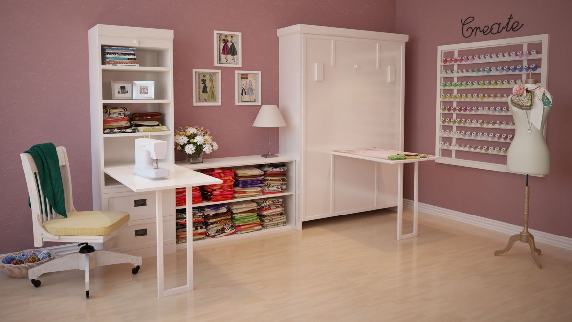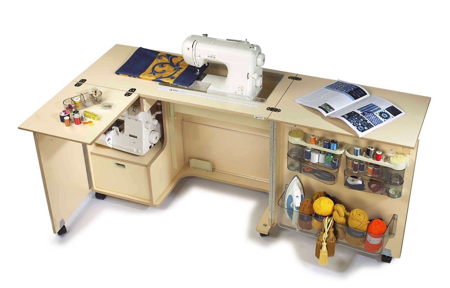 Mit Hilfe solcher Möbel können Sie einen echten Workshop erstellen.Die Effektivität des Nähprozesses wird deutlich erhöht.