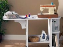 Sehr wichtig Ergonomie und Kompaktheit ähnlicher Konstruktionen. Schließlich ist nicht jedes Haus mit einer speziellen Werkstatt für Handarbeiten ausgestattet. Deshalb sind Falt-, Eck- oder Faltmodelle von kleinen Tischen die beliebtesten unter den Käufern. Das Design des Klapptisches zum Nähen oder Filzen ermöglicht es Ihnen, einen vollwertigen Arbeitsplatz einzurichten. Gleichzeitig, wenn sie gefaltet sind, verstopfen solche Möbel den Raum nicht.