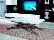 Die Tische mit den transformierenden Beinen sehen sehr stilvoll aus, besonders für futuristische, minimalistische Innenräume und Hightech-Innenräume.Oft haben diese Tische auch Räder, die ihre Funktionalität erhöhen.