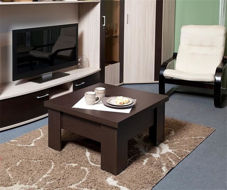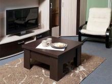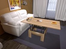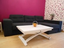 - Kaffeetisch-Transformator. Am häufigsten für das Wohnzimmer verwendet, ein bisschen weniger - für das Schlafzimmer. Diese Option ist gut, denn selbst wenn sie gefaltet und sehr platzsparend ist, kann sie zu einem ausreichend großen Esszimmer umfunktioniert werden. Dies ist eine großartige Option im Falle der Ankunft von Gästen oder wenn Sie ein kleines Festessen arrangieren möchten.