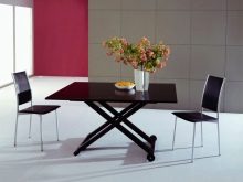 - Kann in Größe und Größe variieren. In der Regel werden sie aufgrund des Vorhandenseins eines Verstellmechanismus, z. B. Bücher, ausgelegt oder auseinandergefahren, bei denen eine erhabene Tischplatte einen zusätzlichen Abschnitt darunter öffnet, der zur Aufbewahrung von Geschirr oder Serviervorrichtungen dienen kann. Eine Hand Bewegung Couchtisch in ein Esszimmer oder umgekehrt umzuwandeln. Eine andere Option, die die Größe der Tischplatte oder die Höhe der Beine verändert, hilft im Falle von unerwarteten Gästen oder der Anwesenheit von kleinen Kindern zu Hause, die nicht hoch sitzen können.