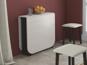 - Verwandlungstisch für die Küche. Sein Vorteil besteht vor allem darin, Platz zu sparen - in der Küche findet meist eine ausreichend große Anzahl von Aktionen und Bewegungen statt und zu sperrige Möbel sind dort nicht angebracht. Aber ein kleiner Tischständer für Möbel, der zu einem Tisch für sechs bis acht Personen umfunktioniert werden kann, oder eine Tischplatte, die in die Wand eingebaut ist, wären durchaus geeignete Optionen.