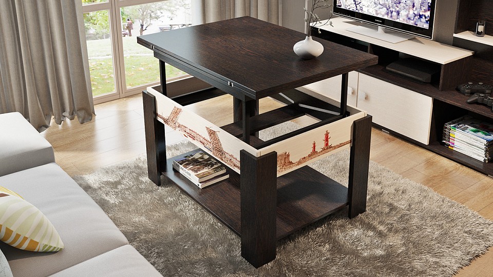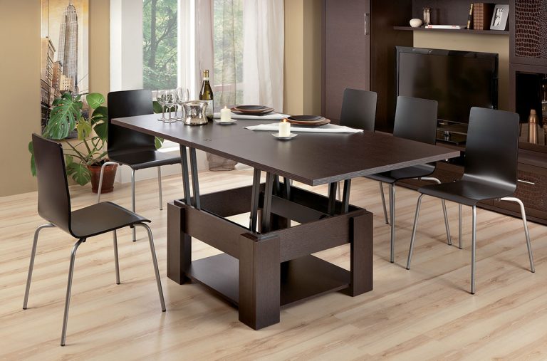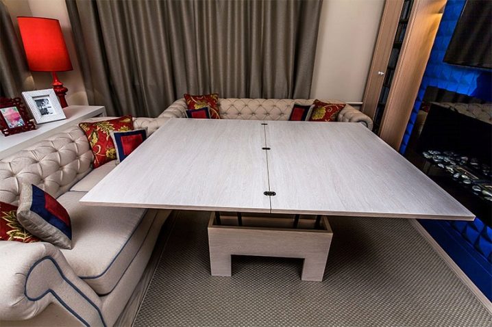 Verwandlungstische für Wohnzimmer - ideal sowohl für kleine Zimmer mit 1-Schlafzimmer-Apartments, als auch für große und geräumige Zimmer in großen Häusern. Sie selbst sind universell und haben eine Reihe von unbestreitbaren Vorteilen.