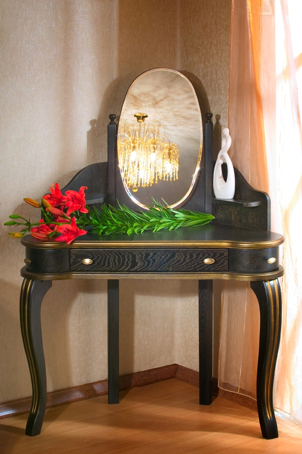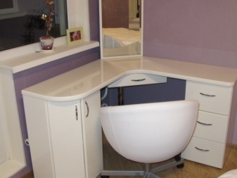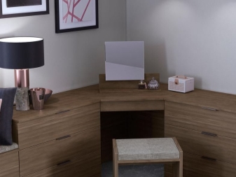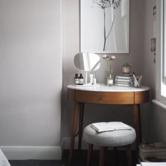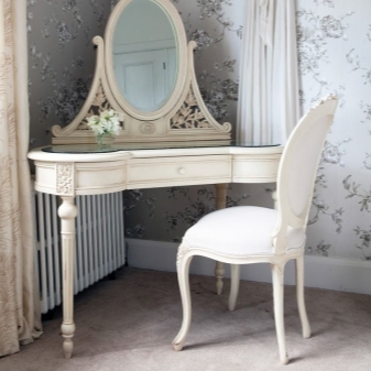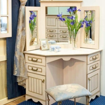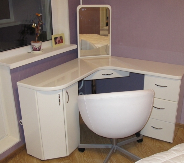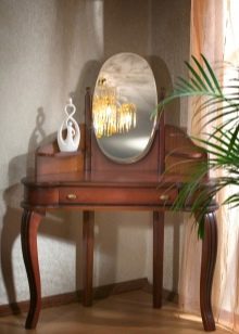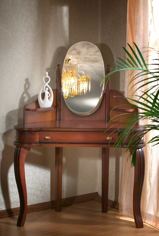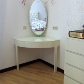 Jede Frau möchte ihre eigene Ecke im Haus haben, wo Sie Ihre Lieblingskosmetik, Pflegeprodukte und andere angenehme Dinge platzieren können. Nicht immer können Sie jedoch einen Platz für Ihren persönlichen Tisch und Frisiertisch reservieren. Vor allem, wenn es sich um Wohnungen der alten Anlage handelt, deren Abmessungen sich in der Größe nicht unterscheiden. Was können Sie in dieser Situation wählen?