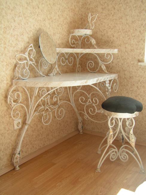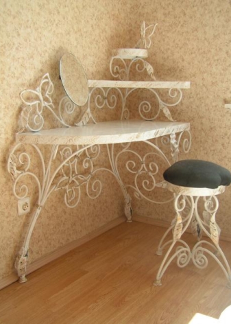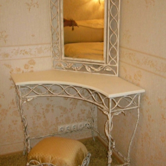 Der Damentisch für die Toilette sollte in das Interieur passen, was bedeutet, dass Sie bei der Auswahl auf Material und Farbgebung achten müssen. In der Regel werden Tabellen aus folgenden Materialien hergestellt: