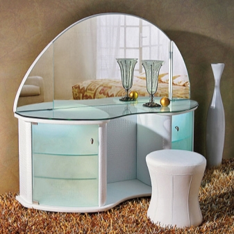 Denken Sie nicht, dass der Schminktisch - das Thema ausschließlich Boudoir, was in modernen Wohnungen nicht angemessen ist. Manche Modelle sehen wirklich futuristisch aus. Sie können ein Akzent des modischen Interieurs im Stil von Hi-Tech oder Loft werden, die Hauptsache ist, das richtige Material und Design des Modells zu wählen.