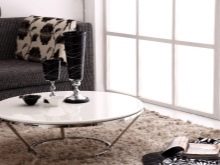 - Es wäre angebracht, dieses Möbelstück zu installieren und auf der geräumigen Loggia. Mit Hilfe eines ovalen Couchtisches können Sie einen gemütlichen und sehr komfortablen Ort zum Entspannen schaffen.