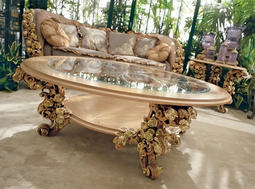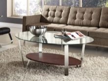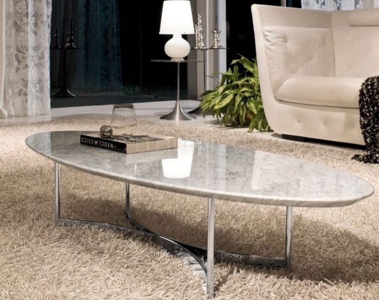 - Ovaler Couchtisch für Wohnzimmer - Sehr gute und praktische Wahl. Hinter ihm wird ohne Probleme eine große Anzahl von Menschen unterbringen können. Die ovale Tischplatte ermöglicht bei Bedarf die einfache und einfache Aufstellung eines Tisches nach Bedarf. Der ovale Couchtisch dient auch als Innendekoration, die ihm Raffinesse, Raffinesse und Komfort verleiht.Normalerweise ist ein solcher Tisch in einem Erholungsgebiet platziert, er nimmt den zentralen Teil des Raumes ein.