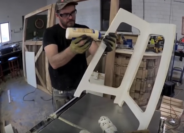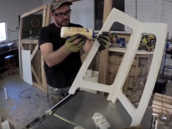 Der Sitz ist auf der gleichen Technologie hergestellt. Die gut vorverklebten Teile werden verbunden. Sie können mehrere Lagen Sperrholz unter Berücksichtigung der möglichen großen Lasten herstellen.