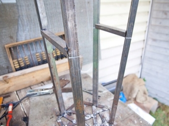 - Zwei Stücke eines bis zu zwei Meter langen Profilrohrs werden abgeschnitten (dies ist der zukünftige Rahmen);
