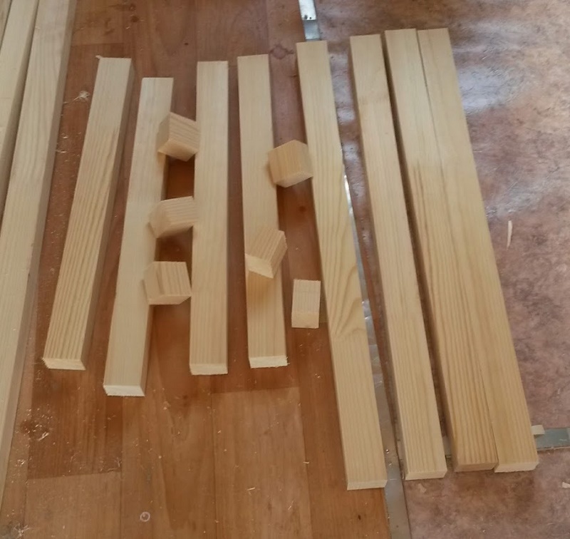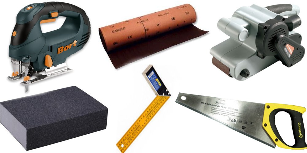 Es ist notwendig, das Werkstück um die Ecken zu schleifen. Für die Herstellung der Beine wird ein Profil von 3 cm verwendet, aus dem ein Detail der gewünschten Größe ausgeschnitten wird. Die Höhe des Modells kann je nach Höhe des Balkens unterschiedlich sein. Normalerweise befindet sich der Sitz 35 cm unter der Tischplatte.