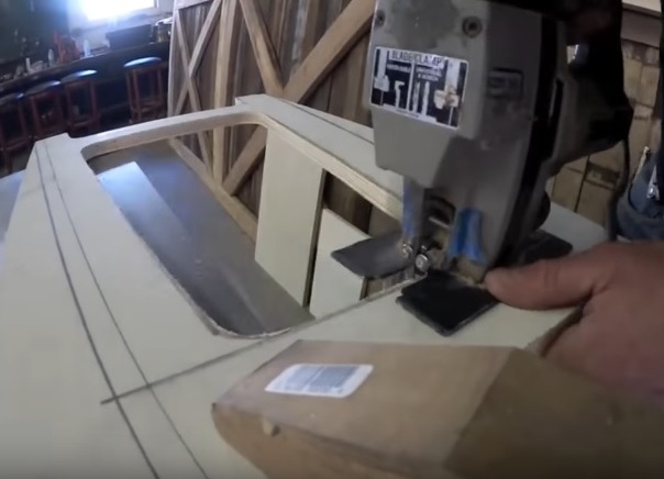 Die Elemente der Beine werden mit einer Stichsäge auf linierten Markierungen ausgeschnitten. So entsteht der Block - zukünftige Unterstützung für die Beine. Dies ist ein wichtiges Verbindungselement: Es wird nur wenige Befestigungen geben, deshalb ist die Stütze für die Beine zuverlässig daran gebunden, die Stützen zu befestigen, die guten Lasten standhalten müssen.