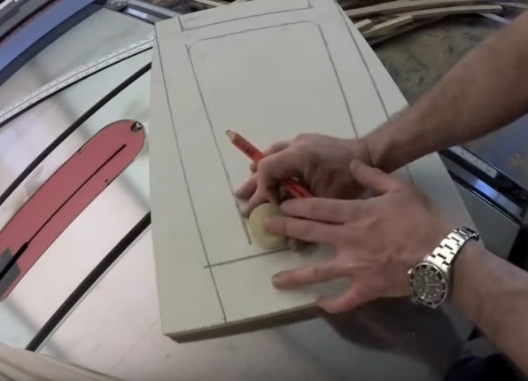 Zu Beginn der Arbeit werden Elemente der zukünftigen Holzbeine aus Holz geschnitten. Die Markierung in Form des Buchstabens A wird auf den Baum aufgebracht, dekorative Rundungen werden an den Schnittpunkten vorgenommen.