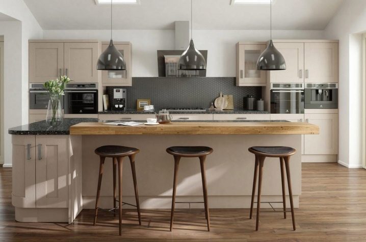 Jetzt in einer Modewohnung im Stil eines Lofts, wo die Küche mit den Wohnräumen kombiniert wird, werden alle zusätzlichen Trennwände demontiert. Bar-Theken sind die "Grenze", die einen Wohnbereich und einen Platz zum Essen in der Küche bezeichnet. Es überrascht nicht, dass solche Attribute zu einem gefragten Möbelstück geworden sind.