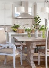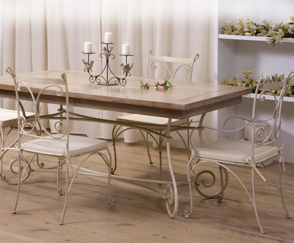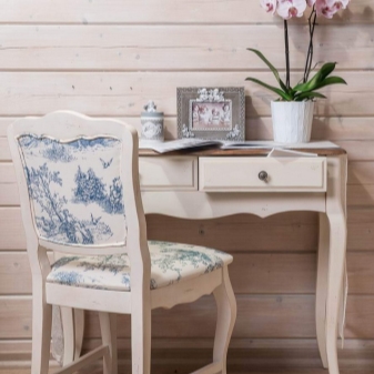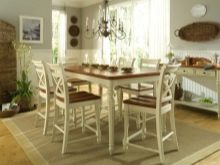- Aber für den Stil der Provence müssen Sie Produkte von sehr eleganten Formen wählen, schön und stilvoll. Das Material ist am besten, um Holz zu wählen, Polsterung sollte aus natürlichen Materialien in hellen zarten Farben gemacht werden, kann es mit floralen Mustern ergänzt werden. Die weiße Farbe der Stühle passt übrigens perfekt zum provenzalischen Stil.
