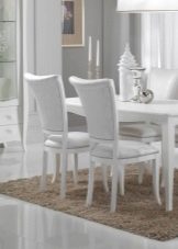 - Das beliebteste Modell für das Wohnzimmer ist weicher weißer Stuhl. Der Rahmen des Produkts ist hart und dank der Polsterung mit speziellen Füllstoffen wird der Stuhl weich und bequem. Ein weiteres sehr wichtiges Element des weichen Stuhls ist das Vorhandensein von Federn im Sitz. Modelle, in denen sie fehlen, gelten als halbweich.
