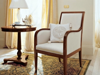 - Es gibt Modelle von Stühlen mit Armlehnen, einige Modelle sind wie ein Thron geformt, es gibt Modelle von Stühlen und viele andere. Polsterprodukte hat auch eine große Vielfalt. Es ist am besten, ein Produkt für einen bestimmten Innenraum auszuwählen.So fügen sich beispielsweise weiße Modelle mit Holzbeinen und Armlehnen perfekt in das Wohnzimmer ein - sie ergänzen und unterstreichen diese Richtung perfekt. Achten Sie bei der Wahl dieses Stuhlmodells auf die optimalen Parameter des Produkts, die maximalen Komfort bieten: