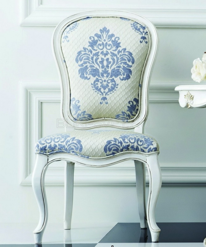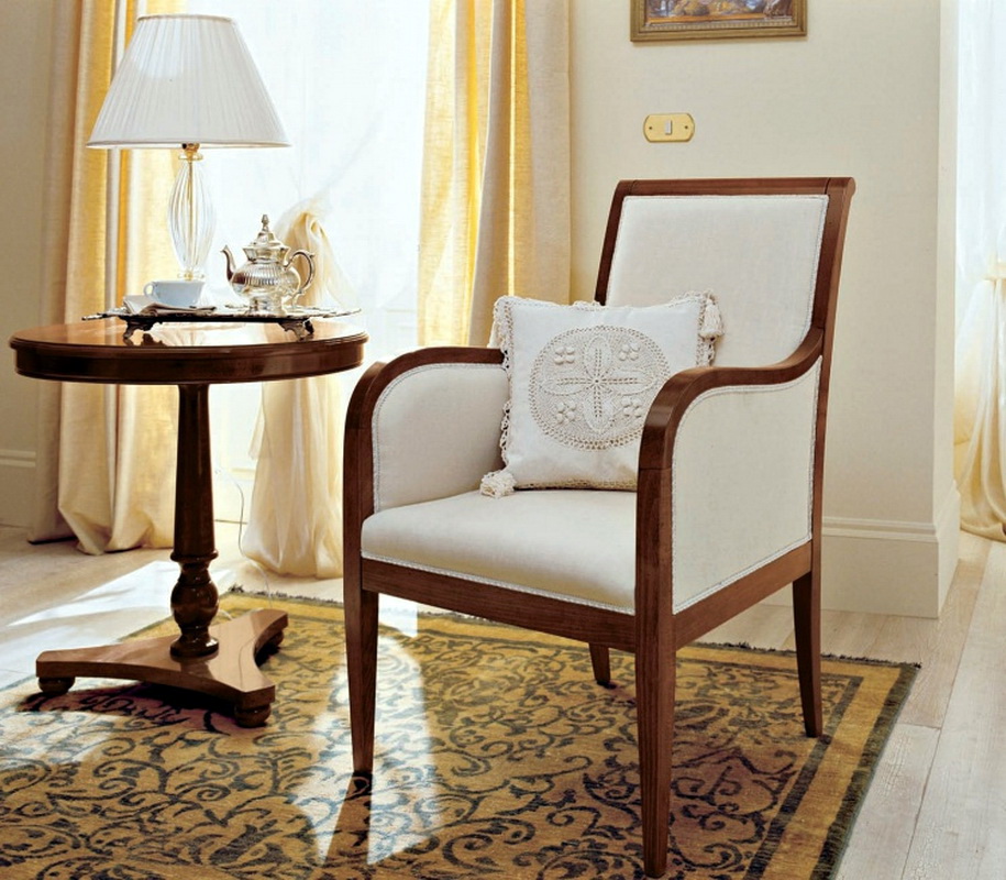Die Rückenlehne des Stuhls im klassischen Stil sollte hoch sein, und die Armlehnen sollten sanfte anmutige Biegungen haben.
