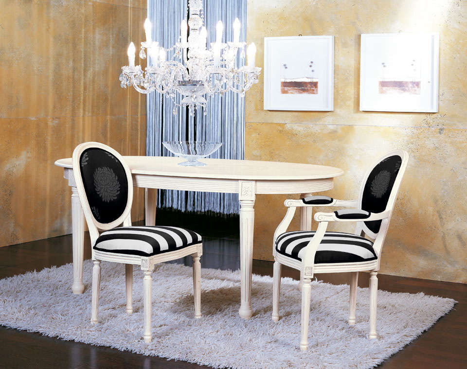 - Zurückhaltung und Eleganz sind dem klassischen Stil inhärent. Die Klassiker zeichnen sich durch elegante Polsterstühle aus, die aus Tapisserie, Jacquard oder Leder gefertigt werden können. Polsterstoff kann mit beliebigen Ornamenten verziert werden - geometrisch, floral und viele andere.