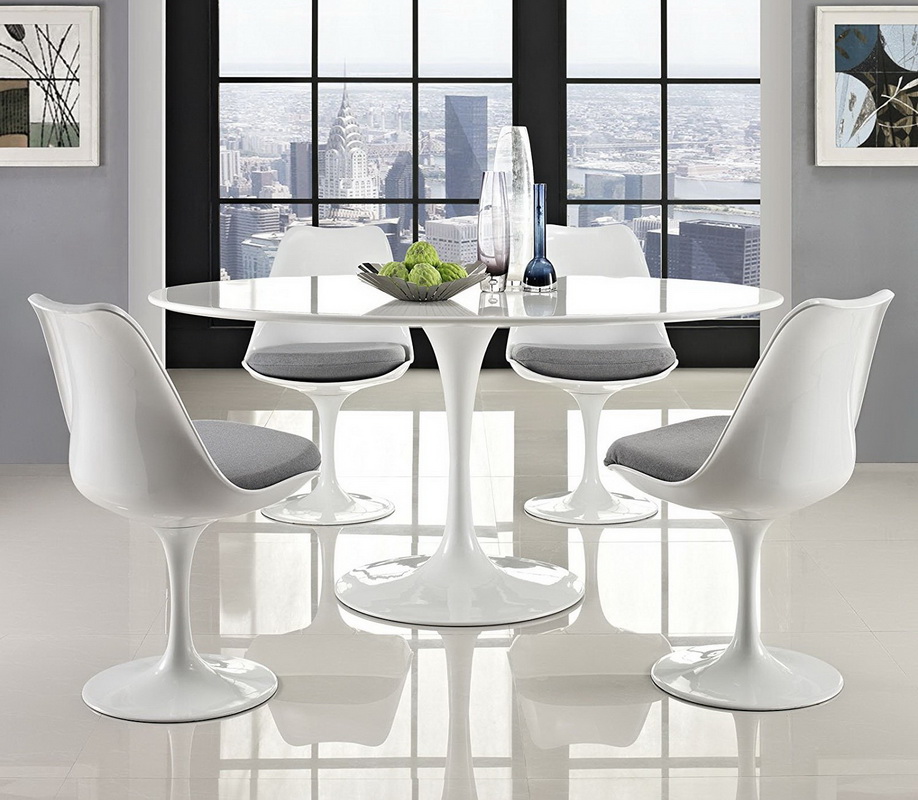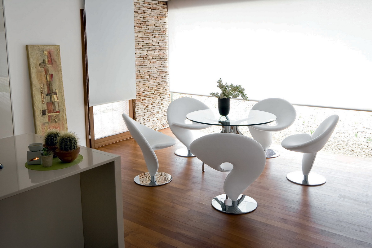 Heute sind weiße Möbel sehr beliebt, da diese Farbe einen Raum heller und gemütlicher machen und den Raum optisch erweitern kann. Daher ist die weiße Farbe sehr wichtig bei der Auswahl der Stühle. Weiße Gegenstände können werden modisches und stilvolles Element im Inneren jedes Stils.