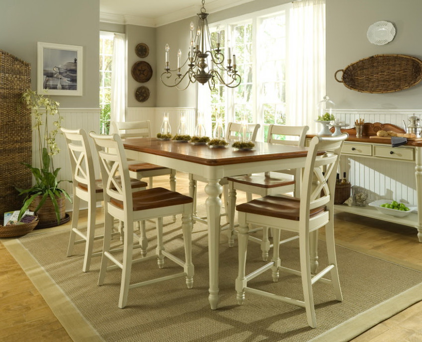 - Im Landhausstil sind einfache und auch leicht raue Stuhldesigns angebracht, das Polstermaterial kann eine Matte in hellen satten Farben sein.