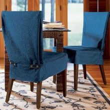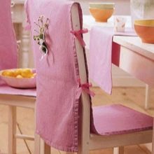 - Für modernere Innenräume ist es besser, neutrale Stoffe zu verwenden. Es sieht sehr ungewöhnlich Denim Cape auf dem Stuhl. Es passt perfekt in jede moderne Innenarchitektur und wird perfekt mit Holzmöbeln kombiniert.