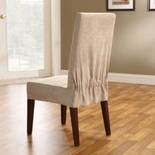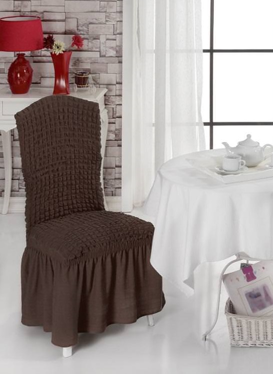 - Wenn Sie die genauen Parameter Ihres Stuhls nicht kennen, ist der Eurocover eine ausgezeichnete Lösung für Sie. Es zeichnet sich durch Vielseitigkeit aus und liegt eng am Sitz an. Auf Holzstühlen mit einem Rücken ist es besser, ein kostenloses Modell-Capes aufzuheben. Sie sind für harte Möbel geeignet.